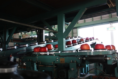 なんと、糖度・色・大きさごとに選果・選別されバーコードに記憶されます。ここでこのりんごたちの行き先が決まってしまうのです。
